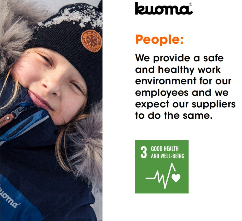 • Our clothing suppliers abroad meet BSCI requirements and we conduct audits to ensure a safe and healthy work environment is provided.